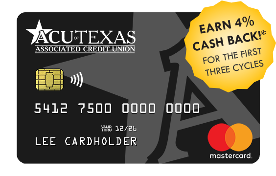 ACU of Texas Secured Mastercard® requires membership with an approved checking account with ACU of Texas. Membership requires savings account with minimum balance of $1. Federally insured by NCUA. Equal Housing Lender.